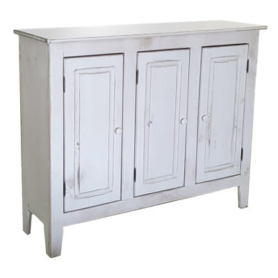 The Sideboard features three embossed-panel doors hiding loads of storage space and one full-depth shelf which runs the length of the interior.