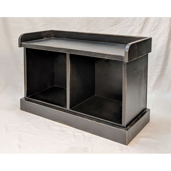 The little sister to our original Cubby Bench (with 3 cubes), this size-conscious Cubby will fit perfectly in smaller entrances or hallways. Provides a sturdy seat to put your shoes on and ample storage area underneath, perfect for a pair of #115 Cubby Bins or other storage baskets.