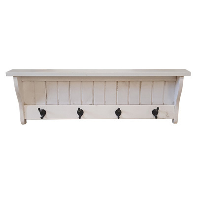 A chic addition to any space! Beadboard back highlights the stylish finish, while four black metal hooks truly add to this piece's functionality.